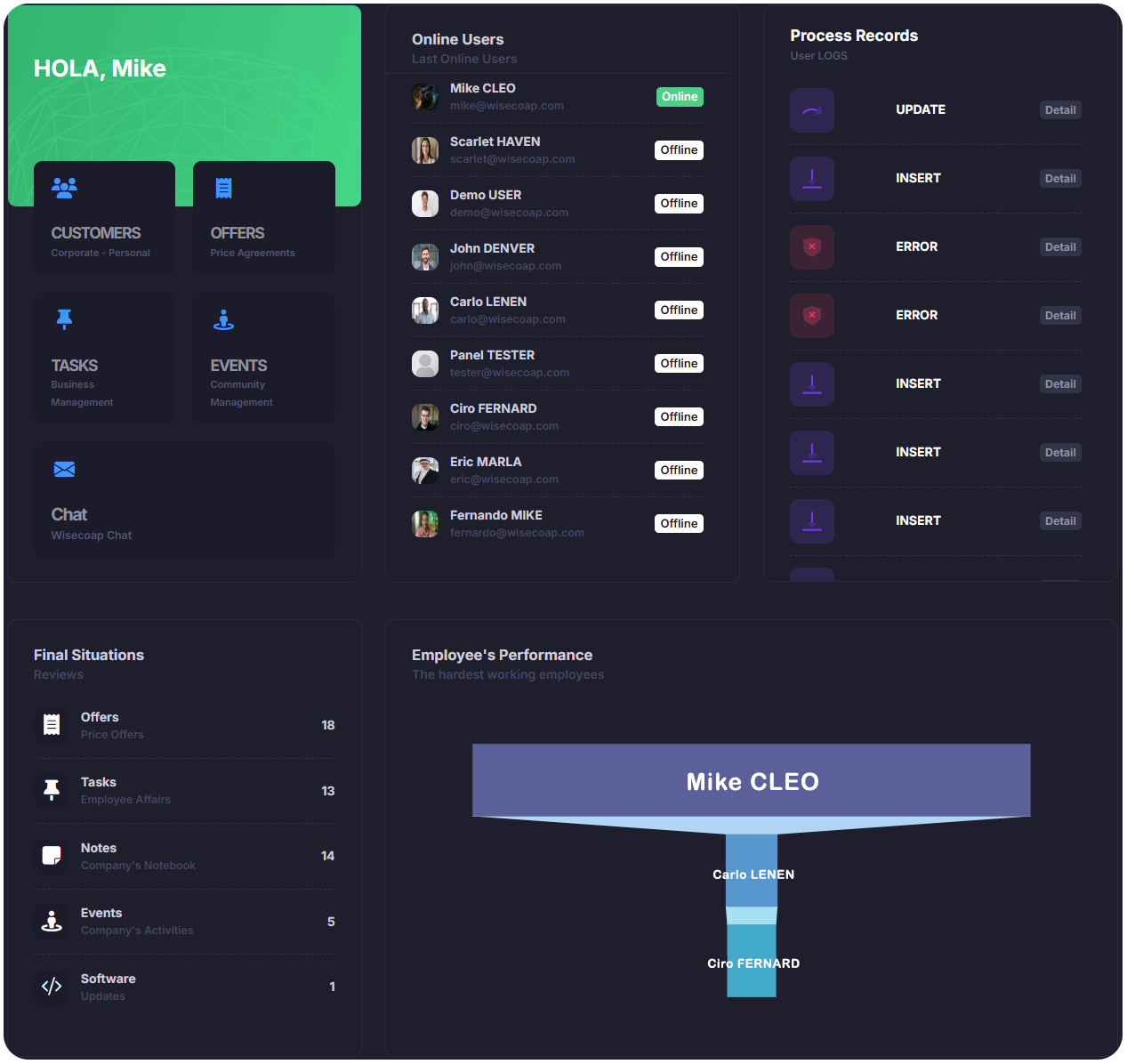 Panelinizi kendi ihtiyaçlarınıza yönelik özelleştirebilir ve bütünüyle şirketinizi gözlemleyebilirsiniz.