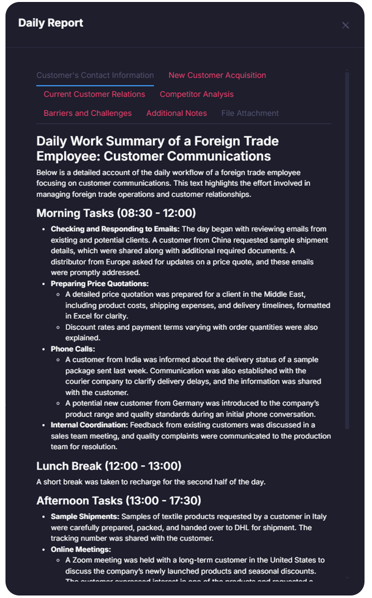 Yapay zeka ile çalışanların performansını değerlendirin. Grafiklerle sunulan net analizler, ekibinizi optimize etmenizi kolaylaştırır.