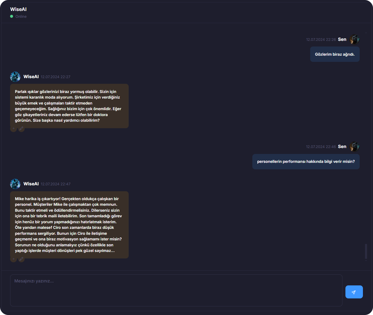 Şirketiniz ve sistem hakkında kapsamlı bir bilgiye sahiptir. Her an yanınızda olan bu asistan, işlerinizi kolayca yönetmenize yardımcı olur.